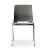 Minimalistisk design med fleksibelt støpt seteskall i resirkulert polypropylen, velg mellom 3 farger. Lakkert stålunderstell, velg mellom sort eller grått.