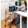 Permvogn Owen er en pålitelig permvogn med 2 tiltbare hyller med ryggstøtte som gjør at bøker og permer ikke sklir av hyllene. Vognen er pulverlakkert i grå farge, hyller i bjørk melamin, inkl 4 stk bokstøtter.