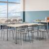 Bordplaten er høytrykkslaminat, velg mellom bøk-, bjørk-, hvit- eller grå laminat. Lakkert understell i grå farge. Leveres umontert. Kontakt oss for andre høyder.