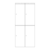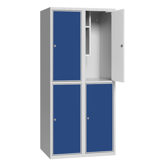 Skapet har to rom i høyden, utvendig mål på rom B300 x H875 mm. Hvert rom er innredet med to bok-/permrom og to kleskroker.