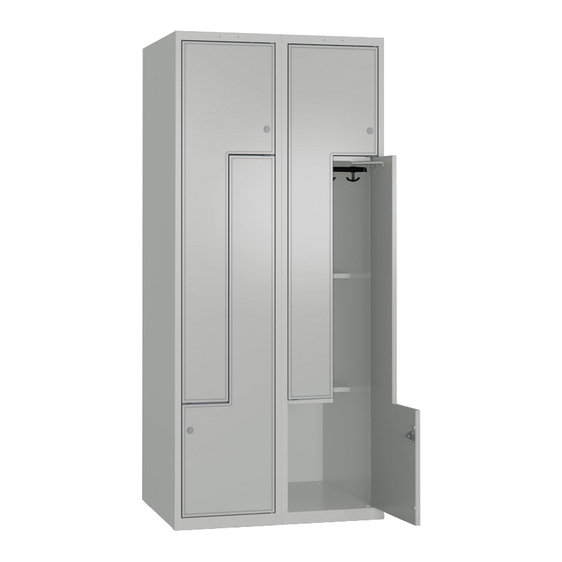 Skapet har Z-dør, utvendig mål på rom B400 x H1326/441 mm. Hvert rom er innredet med en ankerkrok og to bokrom.