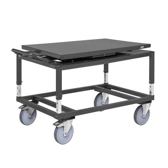 Pallevogn, pulverlakkert i mørk grå farge. Tilpasset EUR-pall 1200 x 800 mm. Justerbar i høyden.